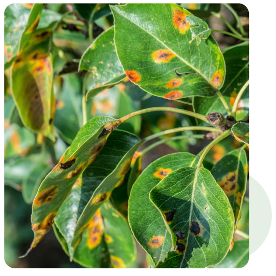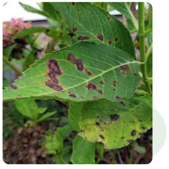 Leaf spot diseases are caused by various fungi or bacteria and result in circular or irregular spots on the leaves of shrubs. Severe infections can cause premature leaf drop.